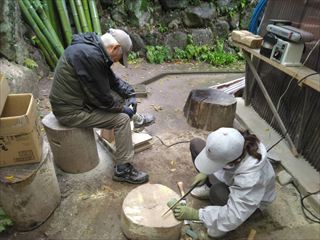 本日は雨天でしたが、7名の会員の方が参加されました。交野市主催のにぎわいフェスタ出店に伴う景品づくりとが一段落し、各会員は正月の縁起物(宝船、祝福等)を熱心に制作されていました。