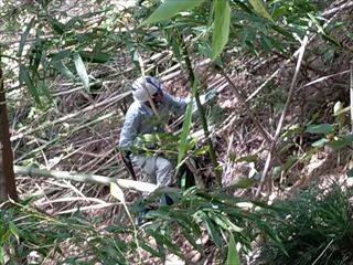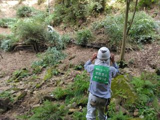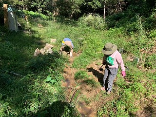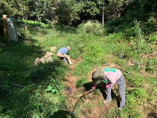 竹伐りは、多目的広場への道の奥の若竹とモリタリングエリアの上流側と下流側の竹の皆伐をしました。バタフライガーデンの整備は小川の、水汲み場を中心に整備を行いました。 また、交野市は、カナダの都市と姉妹都市として定期的に相互に訪問して交流しているそうです。本年は、24名の方がカナダから来訪された。その中のひとりが白井さんと当会のバタフライガーデンを見学されました。
