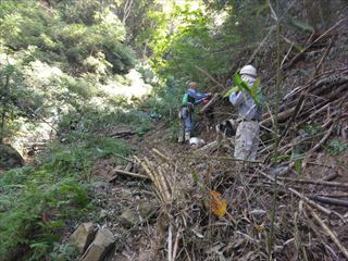 10/2(木)バタフライガーデンの整備・カナダから来訪・拠点地周辺の整備・竹炭焼き・竹伐り