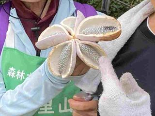 当日は雨上がりでしたが交野山清掃ハイキングを実施しました。参加者は少なかったです(会員2名 市民1名)が観音岩の下でペットボトルを主として約30リットル回収しました。白旗池付近で山を管理されている方からアケビをいただきました。コース:間道〜2号池手前〜らくらく新道〜みはらしの道〜ささやきの道~ヤマカゼの小路〜山頂〜オニヤンマの小路〜いきものふれあいセンターやすらぎの道〜みはらしの道