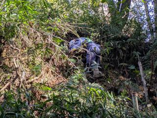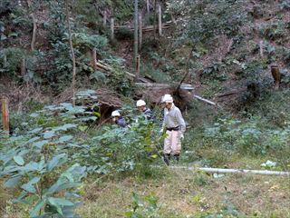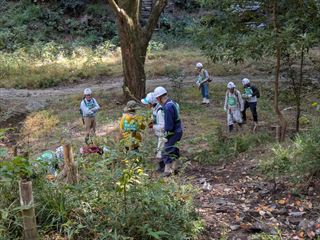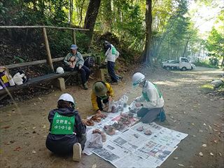 19名で、竹炭焼き、バタフライガーデンの整備、拠点地周辺の整備、竹伐り(さともり事業対象)、里山保全推進員養成講座 第2回を行いました。竹伐りは、3号池上部石仏の道側の若竹伐りと3号池下の残っている侵入竹の皆伐をしました。バタフライガーデンの整備は、猪の来訪と雨によるがけ崩れであちこち様子が変わっている敷地内を整備しました。見つけた草花の名を確認したり、敷地の未来図について話し合ったりしながら作業を進めています。他に、枚方里山の会・穂谷(市民ボランティア団体)が当会の見学に来られて、9名の方と交流をしました(午前中)。