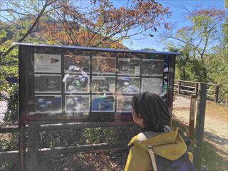 秋晴れの下、5名で清掃ハイキングを実施しました。観音岩の下ではペットボトル10本はじめ約30ℓのゴミを回収しました。いきものふれあいセンターに野鳥の会の新しいボードができています。コースは以下の通り竹林小路~バタフライガーデン~石仏の道~山頂(清掃)いきものふれあいセンター~こもれびの道~源氏の滝です、石仏の道のモミジはまだ紅葉していませんでした。