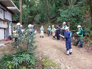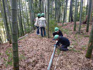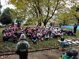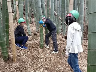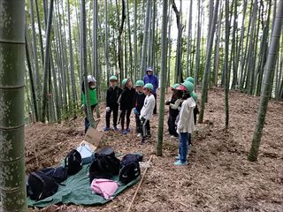 11/5(水)交野市立倉治小学校5年生 4クラス113人が、竹の伐採と竹クラフト作りの体験をされその支援をしました。講師:交野みどりネット9名、交野里山ゆうゆう会27名計36名、引率:5年生担任4名。竹のクラフト作り(情熱パーク)と近くの竹林で竹伐りを行いました。子供達には初めてのことが多く道具を使った作業は、珍しさもあり楽しいと言っていました。