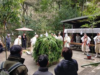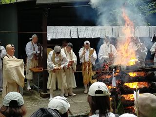1/4(日)源氏の滝不動尊護摩法要が行われました。大峰山の行者による弓矢と刀の作法に続き、護摩壇が燃え上がったところで念じられた沢山の護摩木がくべられます。