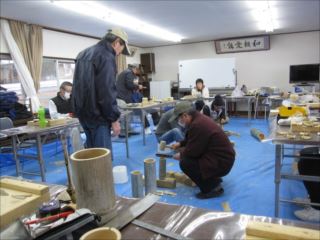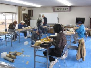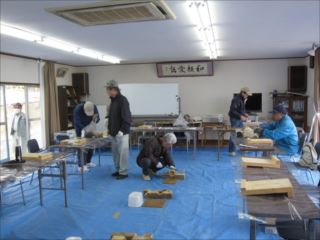 第70回クラフト教室が倉治区から2名、初参加の会員1名合わせて17名で、外は寒いが集会所の中は暖房が効き快適の中でそれぞれ自由作品をづくりました。