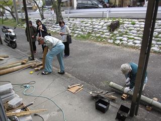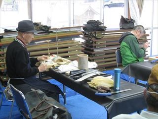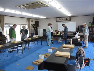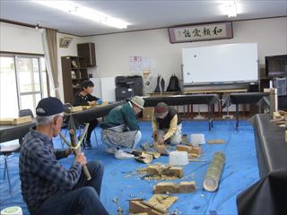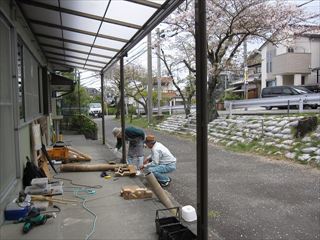 今にも降って来そうな天候でしたが、10名集まりました。集会所の前の桜が、まだ満開で、花見気分で作品作りを楽しみました。4月の新学期から6年生になった倉小の彼が先月に続いて参加。 レパートリーも多くなってきたようです。