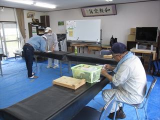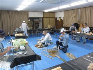 コロナで3,4,5月休止していましたクラフト教室が再開しました。10名の参加。開始前雨が丁度上がって集会所周辺の草刈りをして、コロナの関係で、氏名、住所、TEL、健康状態 をリストに記入して、出来るだけマスクしての活動となりました。久しぶりで自由作品を作りました。