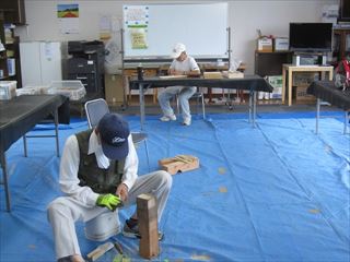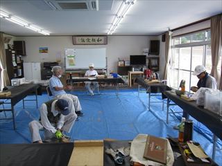 会場の都合で、第1日曜に変更になったのが影響したのか参加者の少ない6名でした。今月も、集会所周辺の草刈りをして自由作品を作りました。