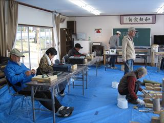 平成28年最初の第45回クラフト教室が14名の参加と2名の見学者で始まりました。昨年初参加の倉治区の方が、鉈や小刀を購入されて、リーダーの指導を仰ぎながら作品作りされていました。今年の課題として、参加者の増員と、東倉治地区の方の参加を促すチラシの配布を考えています。1/10(日) 山手集会所(東倉治)