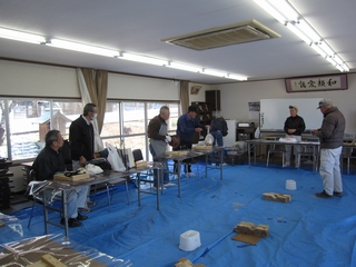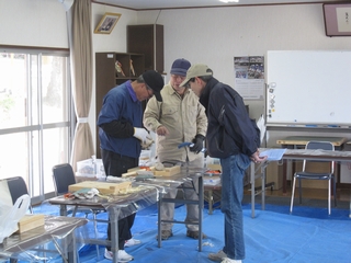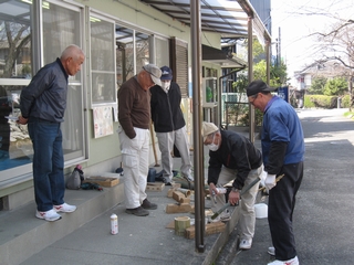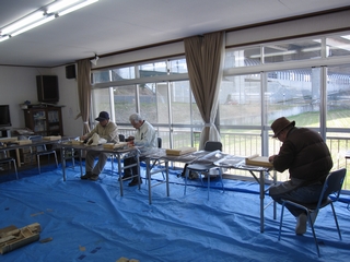 第71回クラフト教室が12名参加で、自由作品を作りました。春らしい陽気となって、集会所の屋外での作業も快適でした。