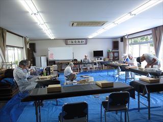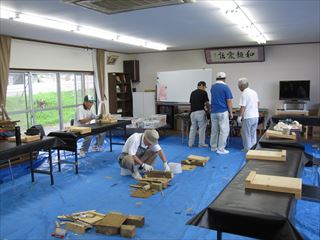 今日は、30度超えの猛暑日になりました。第77回クラフト教室が、倉治区から1名参加を含めて10名で、自由作品を作りました。今年も後半になり、岡田リーダーからは、来年の干支、猪のモデル作品を皆さんに紹介されました。