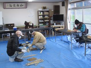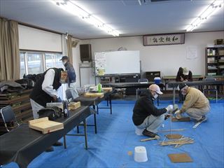 今年初めてのクラフト教室第108回が11名(1名東倉治区より)で行いました。朝は寒かったですが午後は空調がいらないくらいのぽかぽか陽気でした。干支の置物の最終仕上げや竹かご作成用のヒゴの制作自由作品を作りました。