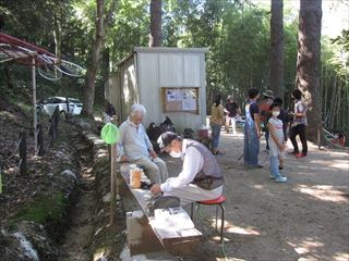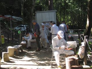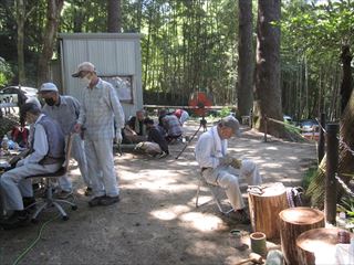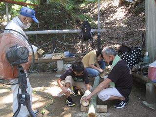 第115回クラフト教室が12名と、会員のお友達家族7名が参加され竹クラフトを楽しみました。9月前半を過ぎたといえ、30℃超えの真夏日。屋外で水分作業補給をしながらの作業。会員の皆さんは、少し早いですが来年の干支(ウサギ)や自由作品を作りました。お友達の家族は、今回2回目(5月)の参加で貯金箱等リーダーの指導を受けながら作っていました。