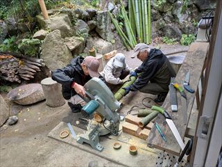本日は雨天でしたが、7名の会員の方が参加されました。交野市主催のにぎわいフェスタ出店に伴う景品づくりとが一段落し、各会員は正月の縁起物(宝船、祝福等)を熱心に制作されていました。