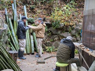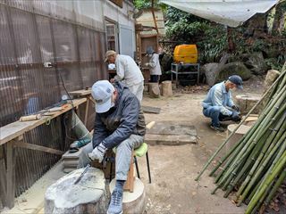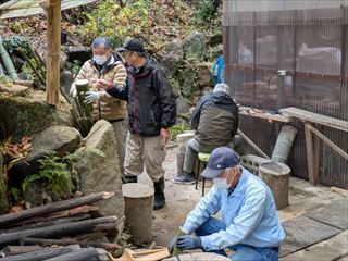 新年を迎えるにあたり、祝箸・宝船・しゃもじの制作や当会が各イベントで使用しているスマートボールの遊具の改修作業を行い、次回の行事に備えています。また、年末の大掃除で6号倉庫屋根の清掃やキノコ栽培地の清掃をしました。