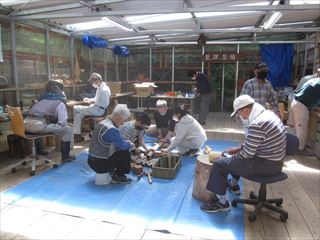 第112回クラフト教室が、好天で爽やかな気候の中13名と会員のお友達で、クラフトに興味があり体験したいと伊丹から親子4名で来られました。リーダーに指導を受けながら初めてながら上手に作っていました。ハイカーも見学あり、昼食は野外のベンチで、新緑とオゾンを浴びながら頂きました。