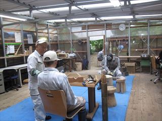 第124回クラフト教室、雨にも関わらづ10名参加しました。室内作業中心に自由作品を作りました。トンボ(オニヤンマそっくり)竹や木を使って作っています。