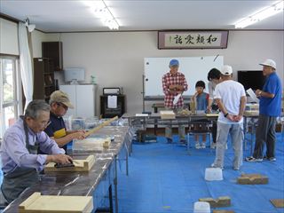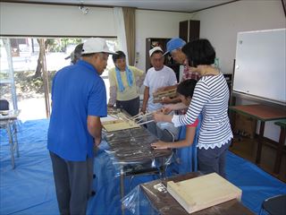 シルバーウィークの初日と定例日変更にかかわらづ、倉治区から初参加の親子さん含め3名とゆうゆう会8名で、自由作品を作りました。 9/20(日) 山手集会所(東倉治)