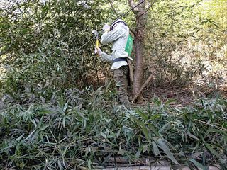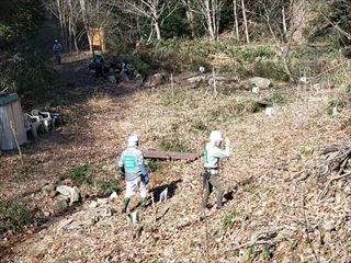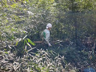 10人で竹伐り活動を行いました。バタフライガーデンの猪除けの柵に使う金網を、柵を配置する場所に運搬とやまざくらの丘の若竹伐りを行いました。やまざくらの丘の若竹は沢山生えていて全部伐り終えることできなかった。