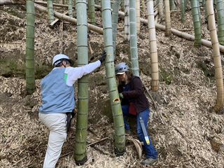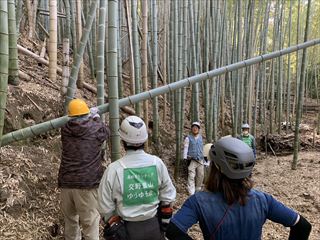12/20(土) 里山保全推進員養成講座 第3回を開催しました。受講生4名は竹伐りでは倒す難しさや、クラフト(孫の手作り)では、刃物の使い方に苦労をされていましたが楽しく体験されていました。