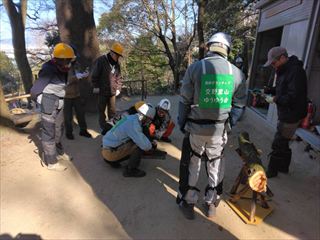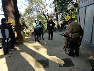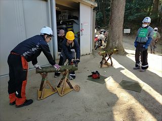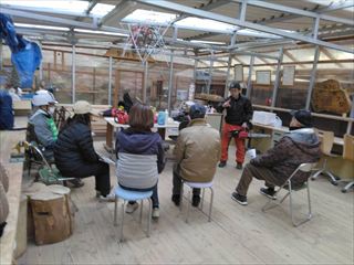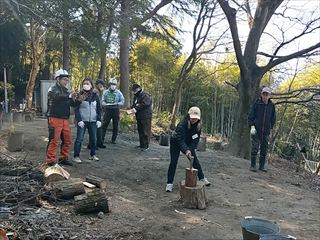 午前:チェンソーの使い方・薪割り 受講生5名(内2名会員)